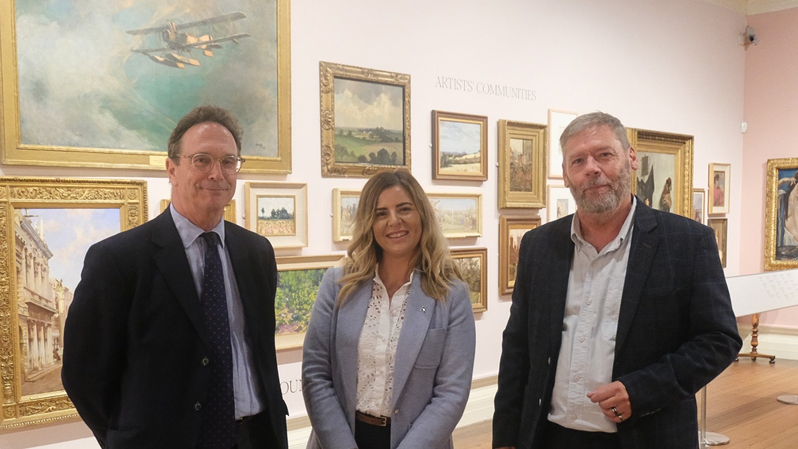 Pictured left to right: Ian Walter, chair of The Usher Gallery Trust, Cllr Natalie Oliver, executive member for culture, and Will Mason, head of culture, visit the transformed spaces at The Usher Gallery. Source: Lincolnshire County Council